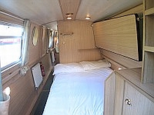 Two Cabins: Choice of a fixed double or 2 low level singles (1 with pipe bed over) in rear cabin, 1 dinette double.