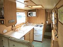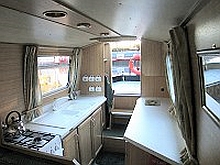 Fully equipped kitchen / galley with a 4-burner gas cooker - complete with grill and oven, refrigerator, sink and drainer, work surfaces and plenty of storage space.